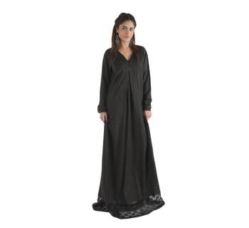 Vendita diretta fornitore donna elegante Bla Abaya elegante in pizzo con scollo a V in bambù con bottone di lunghezza del pavimento naturale